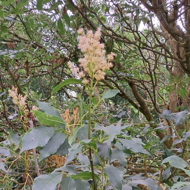 Blad: Oneven geveerd, bestaande uit 9 tot 15 deelblaadjes. De blaadjes zijn eivormig met een gezaagde rand. Schors: Grijsbruin en glad, later met ondiepe, lichte groeven. Bloeiwijze: Grote, eindstandige pluimen vol met kleine, roomwitte, geurende bloemen, bloeit laat in de zomer. Hoogte: Kan 10 tot 15 meter hoog worden.