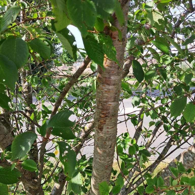 Blad: Eivormig tot langwerpig met een scherp gezaagde rand. De bladsteel heeft vaak twee kleine kliertjes. Schors: Glanzend en roodbruin tot grijs, met duidelijke horizontale strepen (lenticellen). Bloeiwijze: Overweldigende bloei met witte tot dieproze, vaak gevulde bloemen in trossen, voor of tegelijk met het blad. Hoogte: Afhankelijk van de cultivar, meestal tussen 5 en 10 meter.