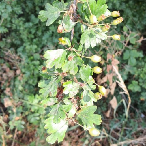 Blad: Diep ingesneden met 3 tot 7 lobben. De lobben zijn getand aan de top. Schors: Grijsbruin en gegroefd, later afschilferend in kleine plaatjes. De takken dragen scherpe doorns. Bloeiwijze: Talloze witte, sterk geurende bloemen in vlakke tuilen in mei-juni. Draagt in de herfst trossen met kleine, rode, eetbare bessen. Hoogte: Kan uitgroeien tot een boom van 10 meter.